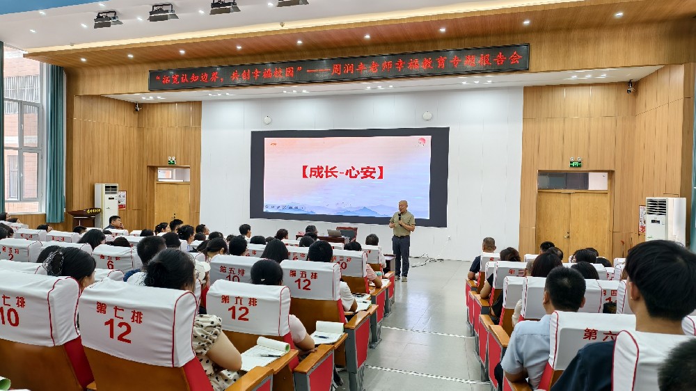 2025年4月17日,北京大學(xué)文東茅教授應(yīng)邀蒞臨德州躍華學(xué)校,圍繞"心安幸福教育"主題開展專題講座,并對學(xué)校幸福教育工作進(jìn)行指導(dǎo)。學(xué)校董事長李炳松、校長李強(qiáng)、黨支部書記張健及各學(xué)部校長熱情接待并陪同文教授參觀校園。文教授走進(jìn)幼教部、小學(xué)部,考察了解學(xué)校幸福教育開展情況,并對我校"立德樹人"的育人環(huán)境和幸福教育實踐成果給予高度評價。文教授深入課堂,與學(xué)生溝通交流。隨后,文教授在學(xué)術(shù)報告廳為高中部師生作人生幸福主題報告。通過對“小幸福、中幸福、大幸福”的生動案例解析,系統(tǒng)闡釋了“德者,得也”的幸福觀內(nèi)涵,引導(dǎo)學(xué)生樹立正確的人生觀價值觀,自立自強(qiáng),向上向善。在互動環(huán)節(jié),學(xué)生們熱情高漲,踴躍分享對幸福的理解,現(xiàn)場氣氛熱烈。李強(qiáng)校長在致辭中表示,文教授的指導(dǎo)為學(xué)校幸福教育注入了新動能。文教授與躍華學(xué)校"幸福先遣隊"成員展開深度交流。大家分享了踐行心安幸福教育以來,對幸福的認(rèn)識和感受的變化。文教授從幸福教育的理念、踐行方法等維度作詳細(xì)指導(dǎo),為學(xué)校幸福教育發(fā)展指明方向。此次專家指導(dǎo)活動,將進(jìn)一步推動我?!傲⒌聵淙恕⒅菨櫺摹庇诵履J降奶剿骱吐鋵?,助力師生共同追尋教育的幸福真諦,構(gòu)建幸福校園。審核:張 健 李百全 攝影:李百全 文案/編輯:齊路娟